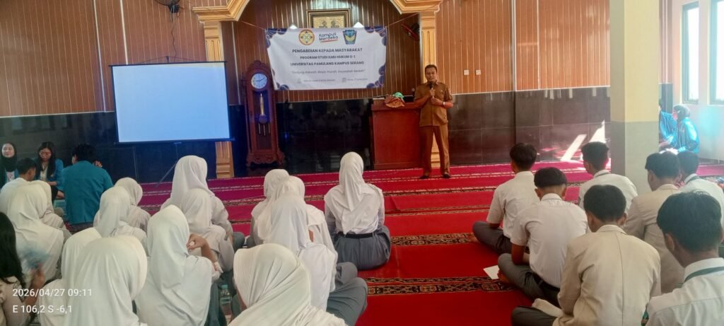 Serang, lexbanten.com — Kelompok 3 Program Studi Ilmu Hukum S1 Universitas Pamulang (UNPAM) Kampus Serang melaksanakan kegiatan Pengabdian Kepada Masyarakat (PKM) di SMA Negeri 5 Kota Serang dengan mengusung tema penyuluhan “Perlindungan Hukum terhadap Anak Korban Bullying dalam Perspektif Undang-Undang Perlindungan Anak.”