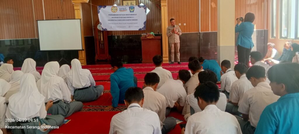 Serang, lexbanten.com — Kelompok 5 Program Studi Ilmu Hukum S1 Universitas Pamulang (UNPAM) Serang melaksanakan kegiatan Pengabdian Kepada Masyarakat (PKM) di SMA Negeri 5 Kota Serang pada Senin (27/4/2026). Kegiatan ini mengusung tema “Pengenalan Aturan Ketenagakerjaan bagi Siswa SMAN 5 Kota Serang sebagai Bekal Memasuki Dunia Kerja.”