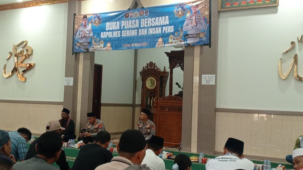 SERANG, lexbanten.com – Puluhan insan pers dari berbagai media menghadiri kegiatan buka puasa bersama yang digelar oleh Polres Serang di masjid lingkungan Mapolres Serang, Minggu (8/3/2026). Kegiatan ini menjadi momentum mempererat silaturahmi antara kepolisian dan para jurnalis yang bertugas di wilayah Kabupaten maupun Kota Serang.