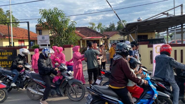 Serang, lexbanten.com – Polsek Kragilan Polres Serang dan pengurus Bhayangkari menggelar bhakti sosial dengan membagikan takjil kepada para pengendara jelang berbuka puasa, Sabtu (28/2/2026).