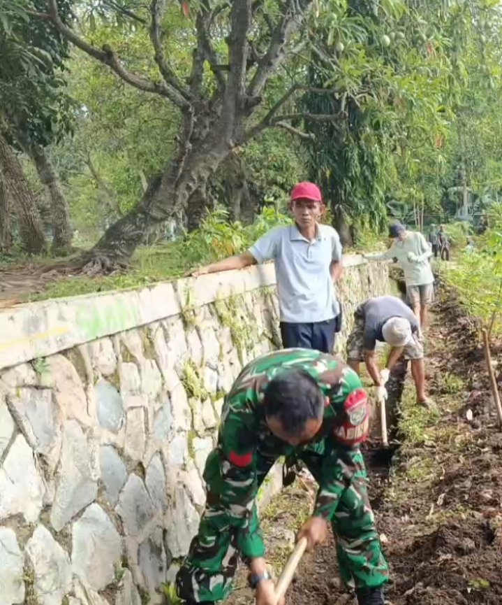 Kepala Desa Teras Bersama Babinsa dan RT/RW Gotong Royong Bersihkan Jalan Desa
